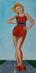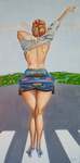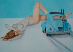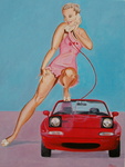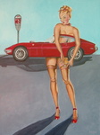 2003'een blote vrouw in een corvette' acryl 40x 80